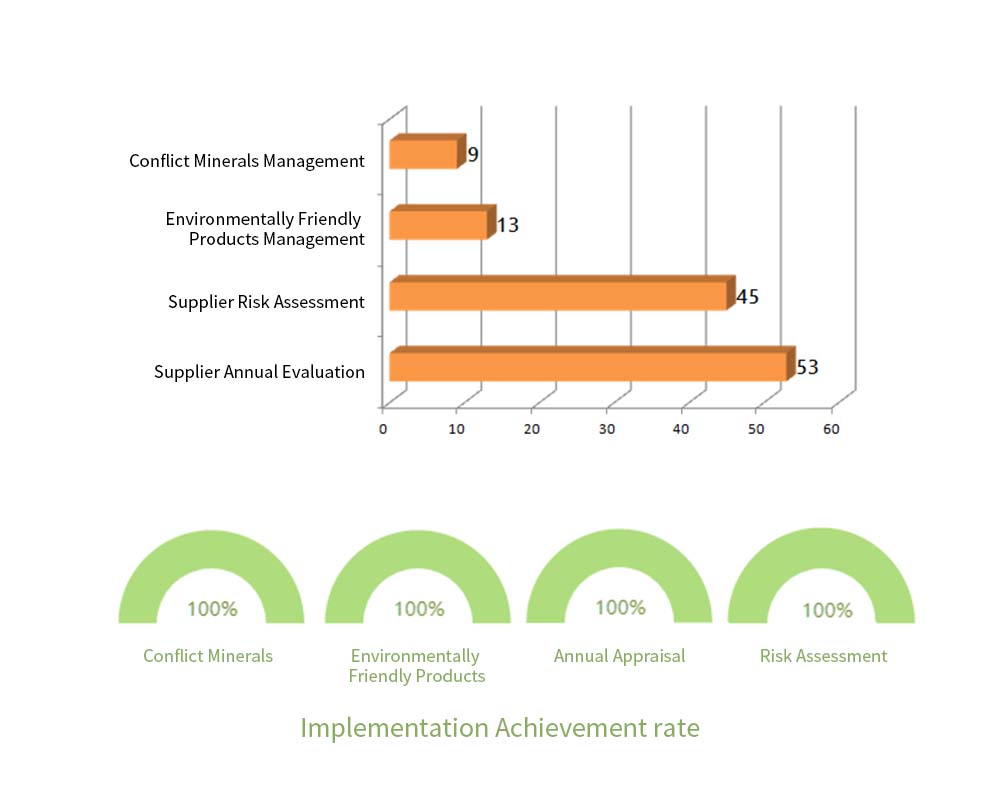 By evaluating each supplier’s supply quality, delivery date, and cooperation, the company avoids sourcing item of poor or insufficient quality which could affect product quality or production progress. We are also dedicated to strengthening information exchange with suppliers to reduce risk and increase sustainability, developing our core supply chain, and establishing long-term partnerships with suppliers.